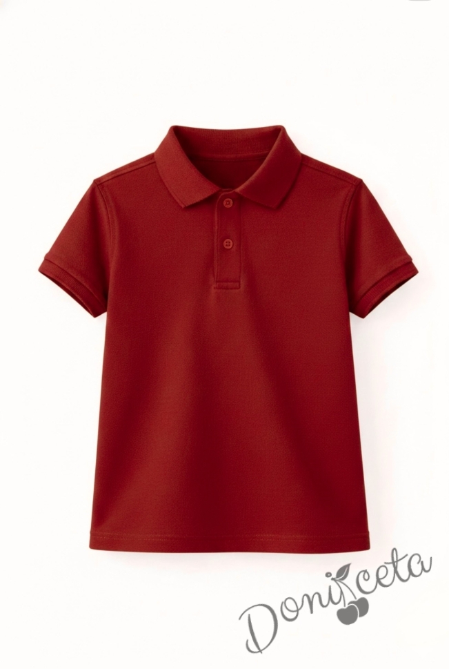 Детска тениска с якичка в червено, подходяща за момче или момиче и за ученическа униформа