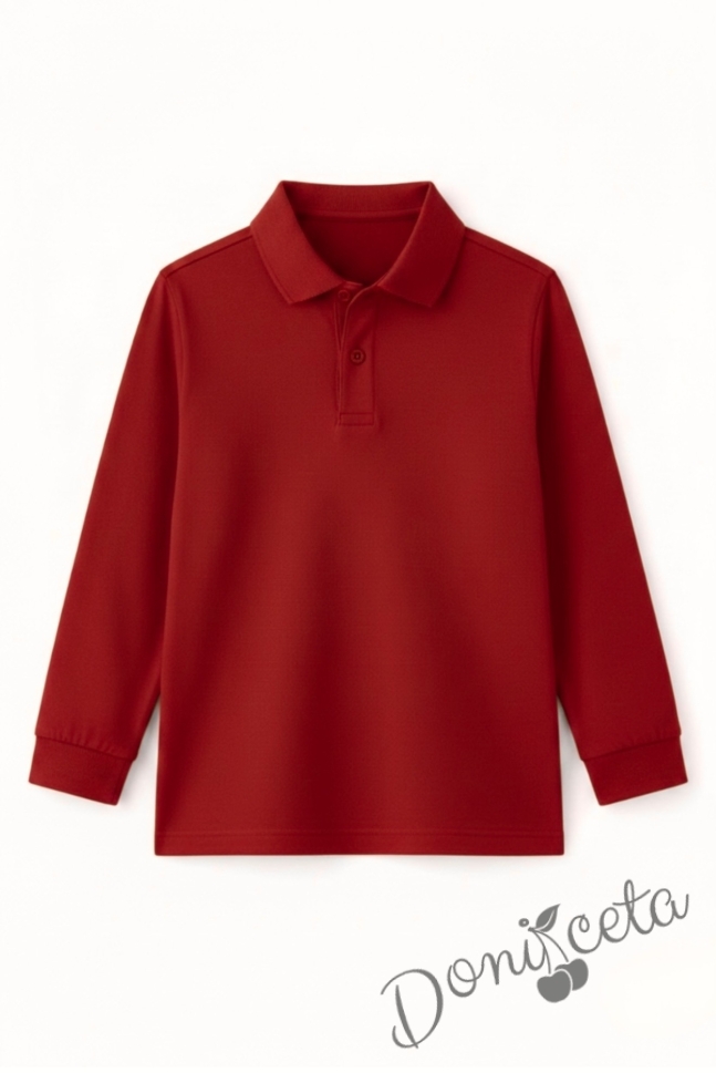 Детска блуза с якичка с дълъг ръкав в червено, подходяща за момче или момиче и за ученическа униформа