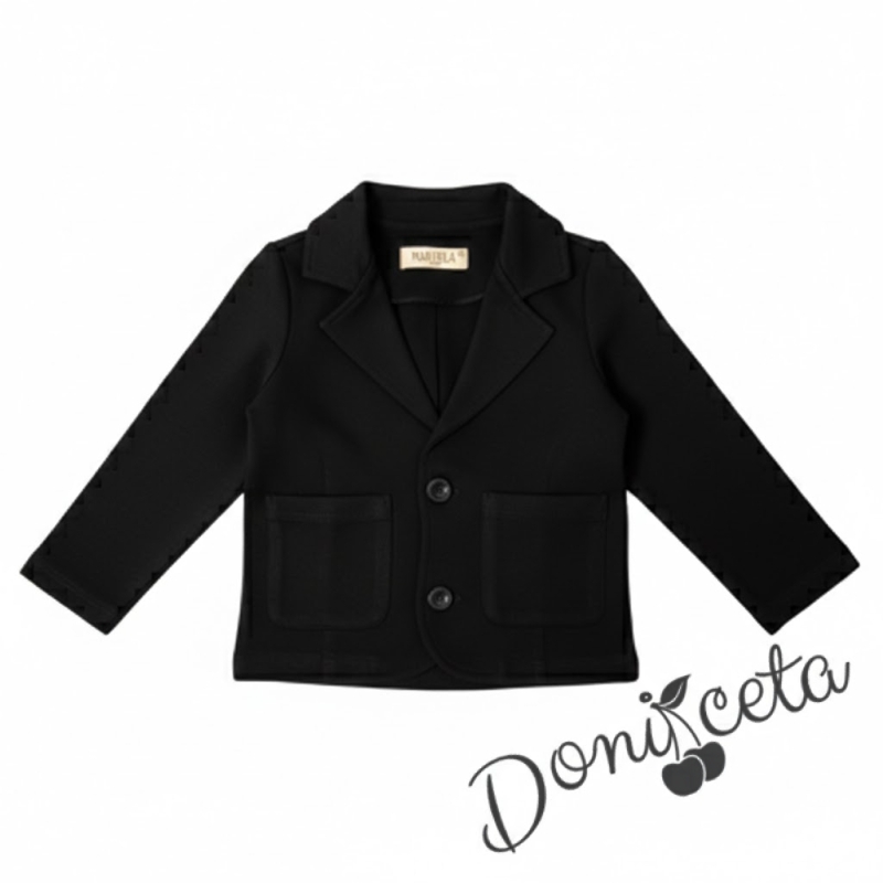 Детско сако трико за момче в черно с джобчета, подходящо е за ученическа униформа