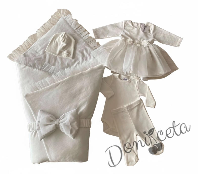 Начало БЕБЕ МОМИЧЕ Комплект за изписване за момиче от 5 части в бяло и екрю