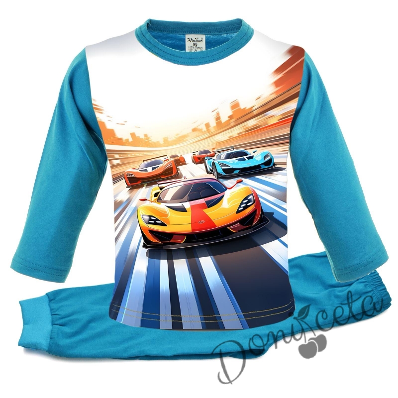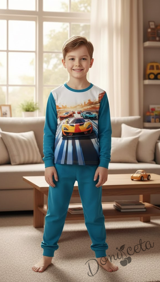 Детска пижама за момче в синьо с коли