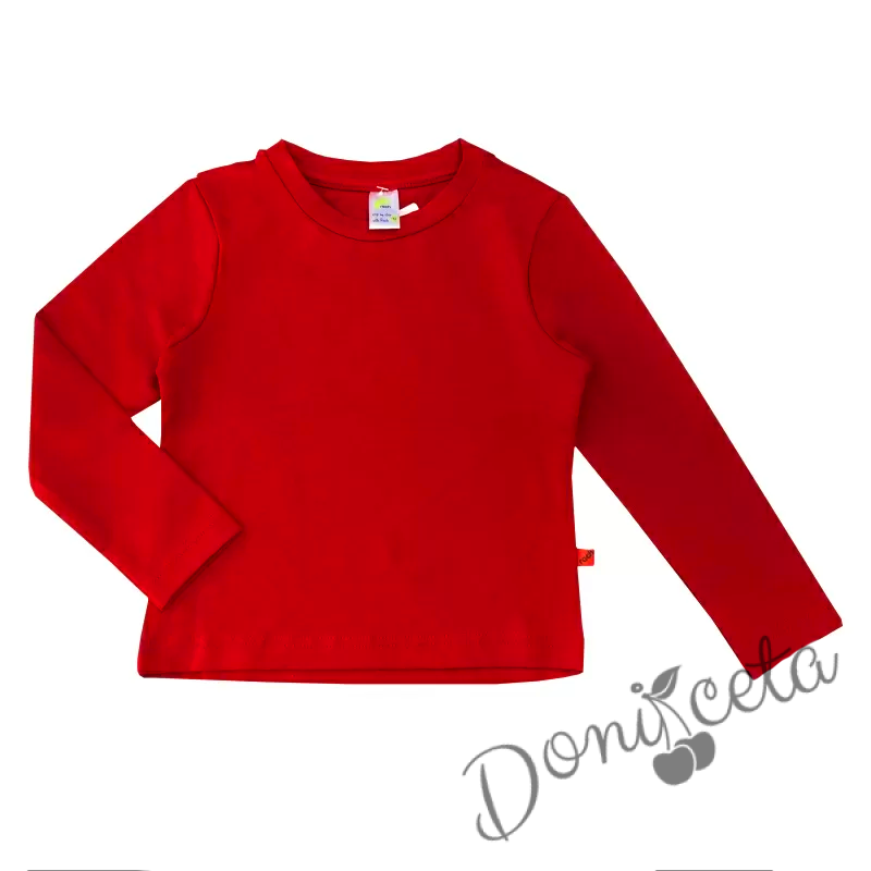 Комплект от детска блузка в червено и панталон в бяло за момче или момиче