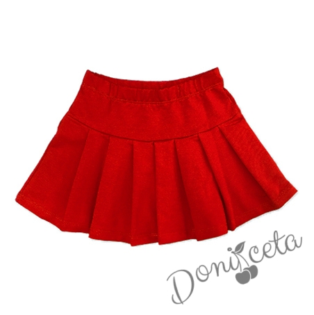 Комплект от 2 части - пола плисе в червено и риза с дълъг ръкав и къдрици