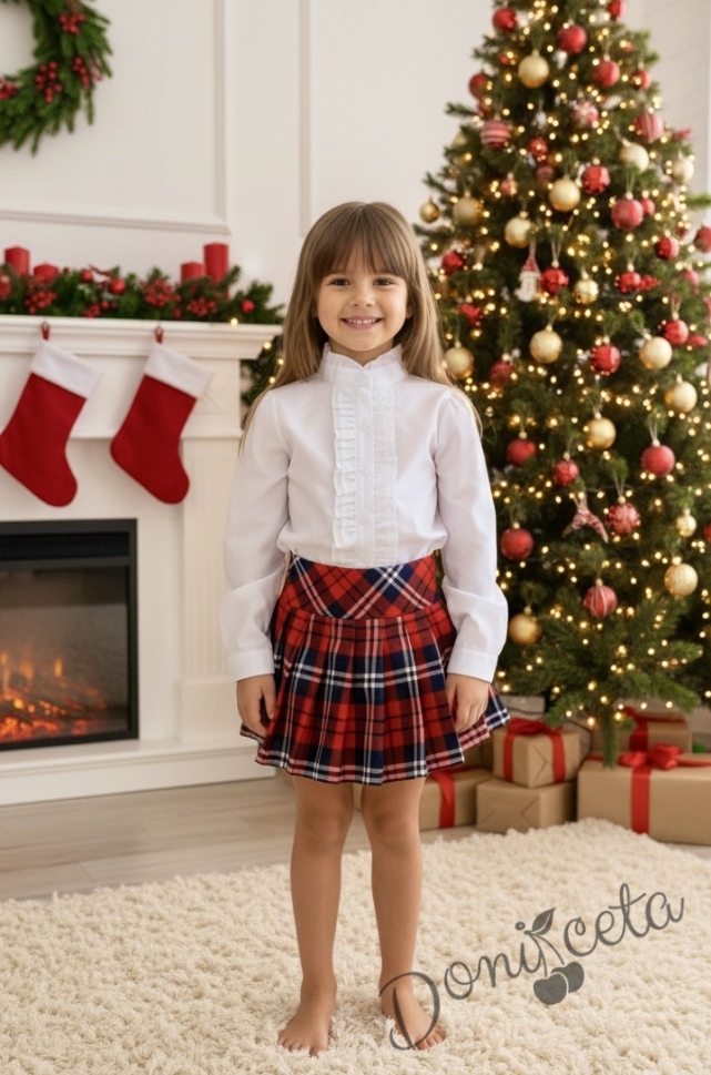 Детско сако за момиче в червено Гери и каре с къдрици и панделка отзад 9700192