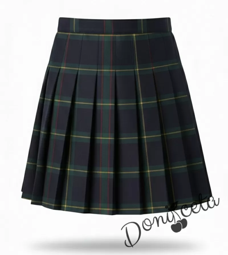 Комплект от 2 части с бяла изчистена риза и карирана плисирана пола до коляното, подходящ и за ученическа униформа