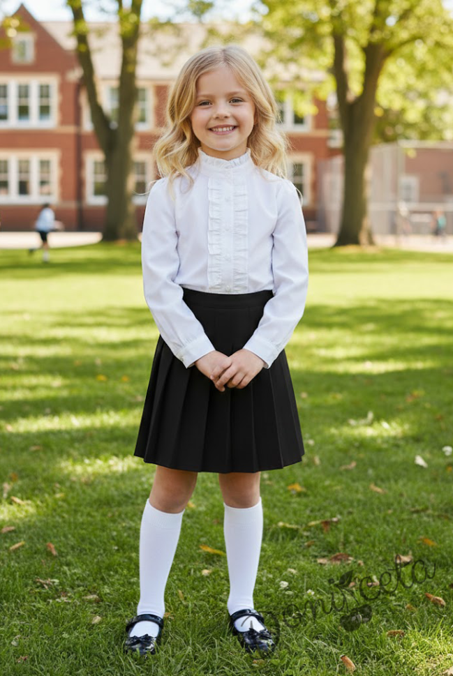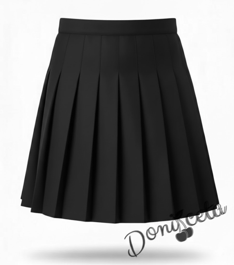 Начало МОМИЧЕТА Комплект от 2 части-плисирана пола в черно до коляното и риза с дълъг ръкав с висока яка