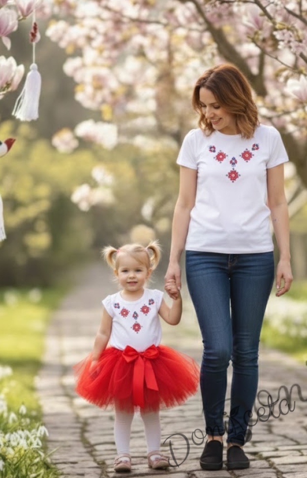 Начало ДЕТСКИ И ДАМСКИ ДРЕХИ ЗА МАЙКИ И ДЪЩЕРИ БЛУЗИ / РИЗИ И ТЕНИСКИ ЗА МАЙКИ И ДЪЩЕРИ Дамска тениска/блузка с къс ръкав с фолклорни/етно мотиви от колекция Майки и дъщери
