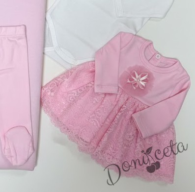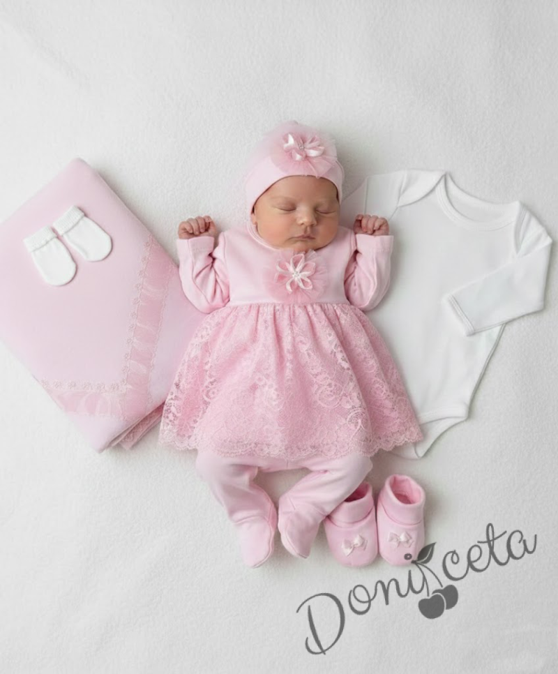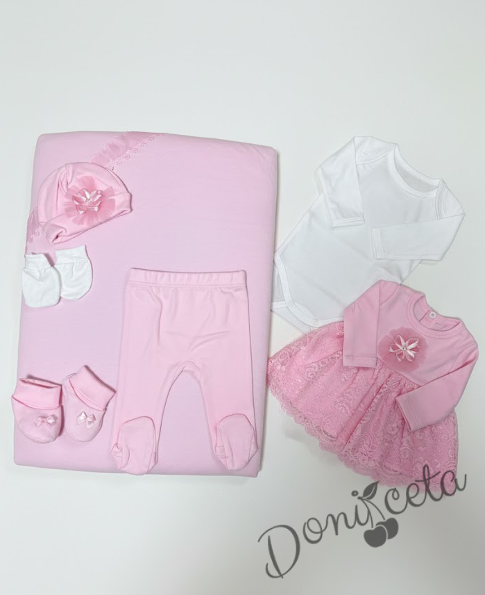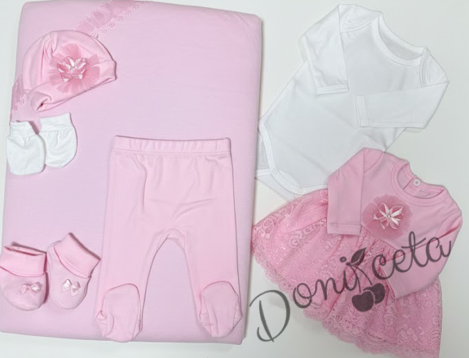 Комплект за изписване от 7 части за момиче в розово с дантела