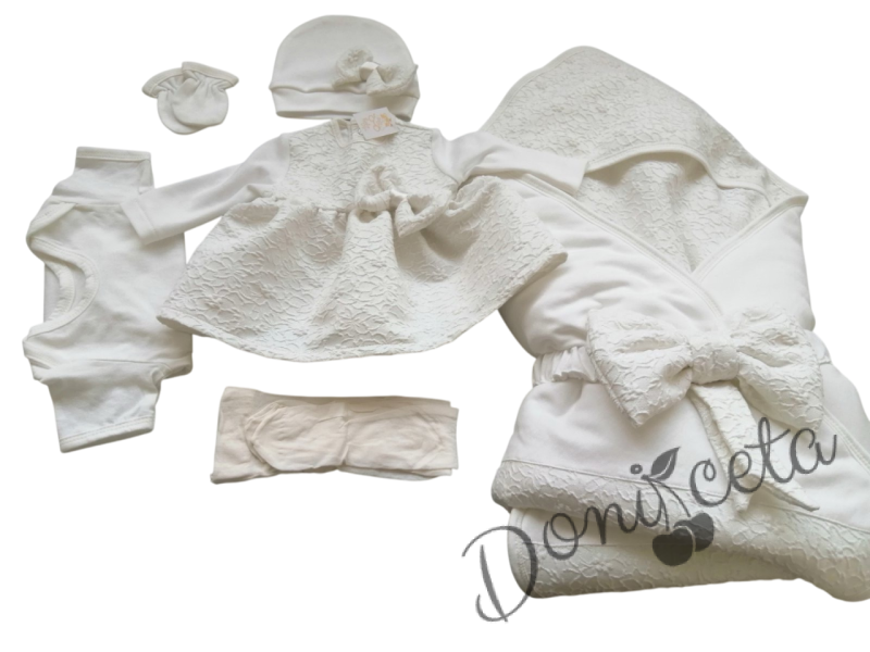 Луксозен комплект за изписване на момиче от 6 части в екрю с блестящи нишки