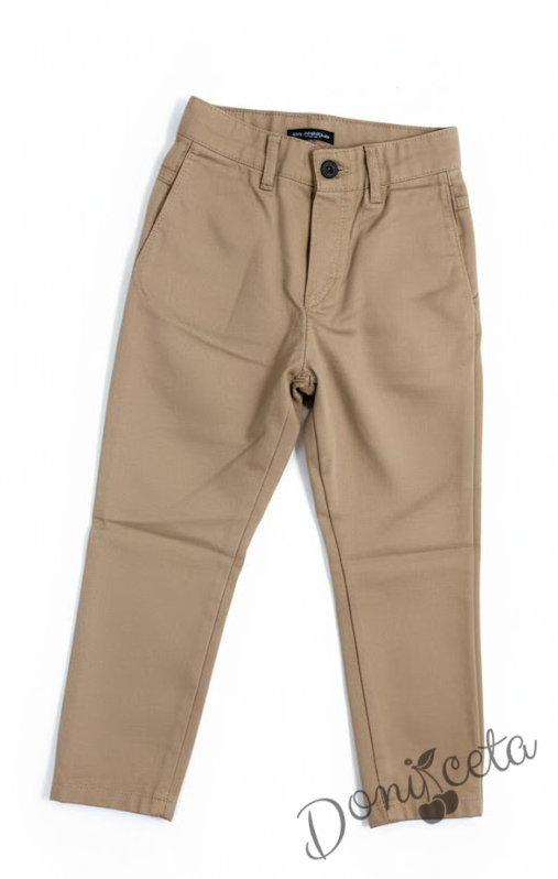 Начало МОМЧЕТА Комплект от панталон, папийонка и тиранти в бежово и бяла риза.