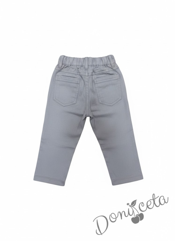 Бебешки комплект за момче от риза в екрю с бежови копчета и панталон в сиво Макси