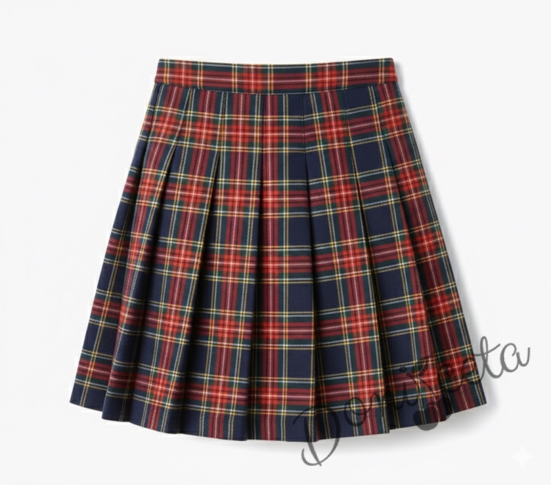Детска плисирана пола в червено каре леко удължена , подходяща и за ученическа униформа