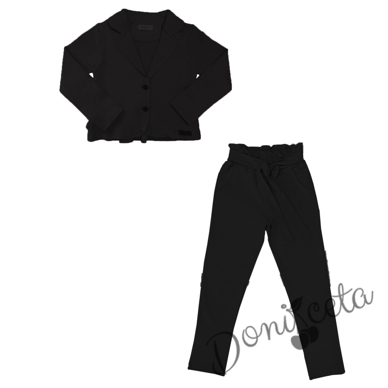 Комплект от 2 части- панталон в черно с ластик и колан, и сако в черно с панделка и харбали