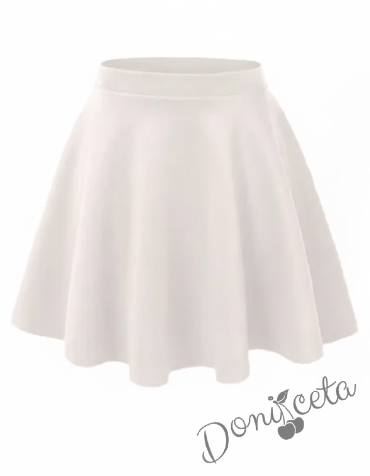 Полата е клош в бял цвят и е от трико, което придава закачлив и модерен вид. Тя е идеална за създаване на различни комбинации.