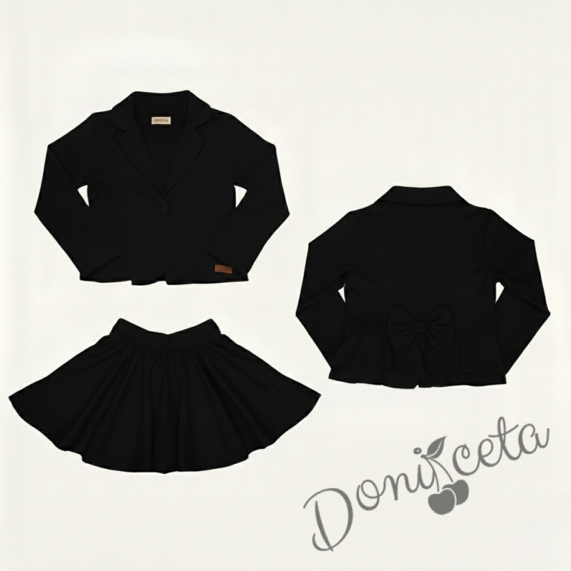 Детски комплект за момиче от пола от трико клош Роси и сако в черно