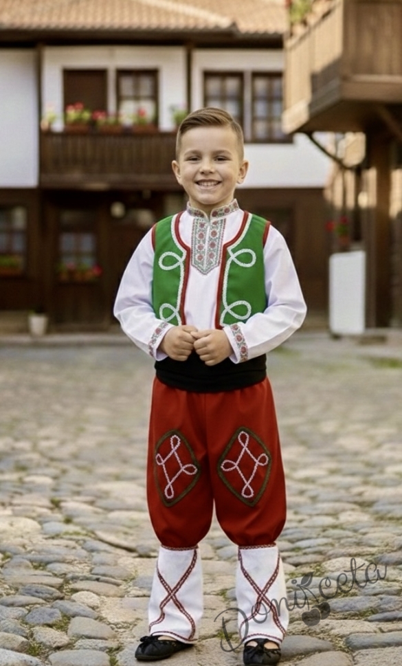 Мъжка или детска народна народна носия трибагреник за момче 198 с фолклорни/етно мотиви, с потури в червено