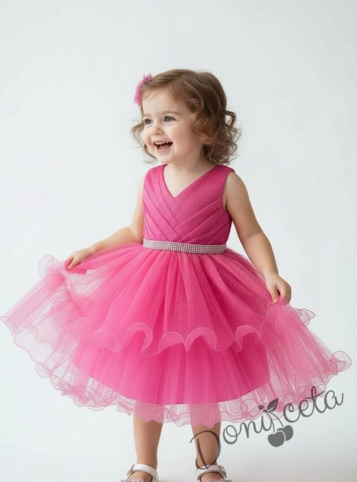 Блестяща официална детска/бебешка рокля в цвят циклама