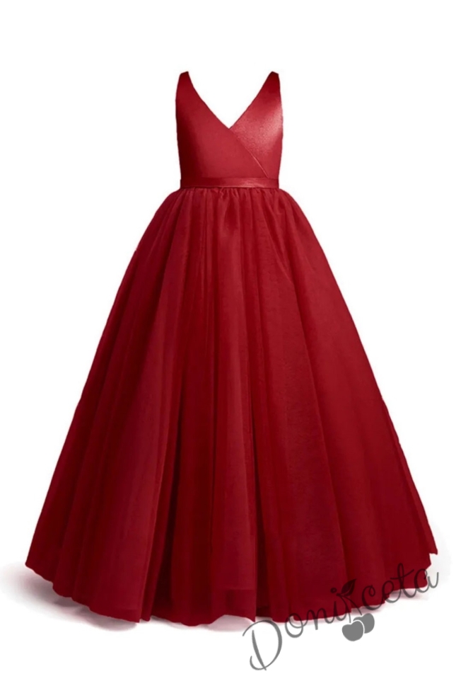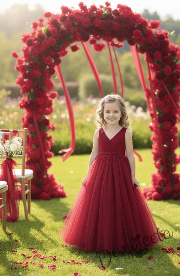 Официална детска дълга рокля Марлен в тъмночервено без ръкав