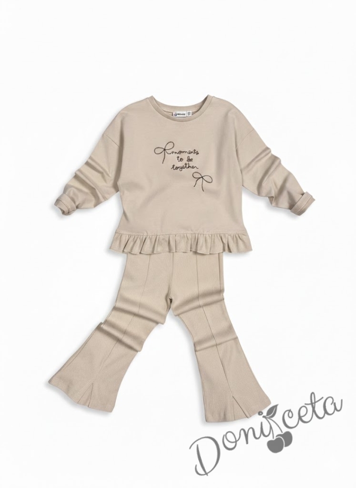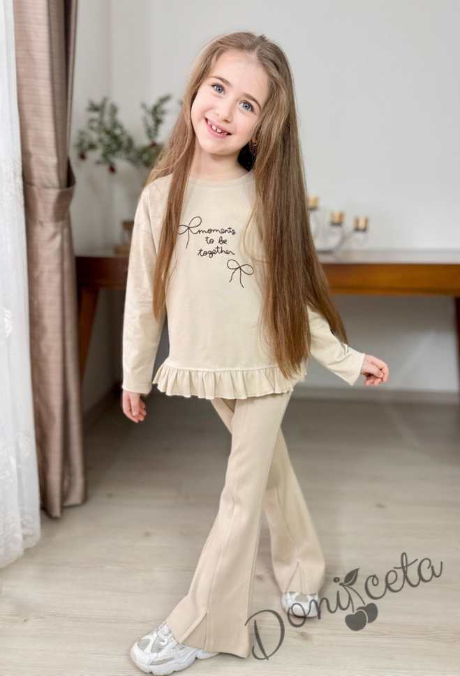 Комплект за момиче от 2 части в бежово къдрички