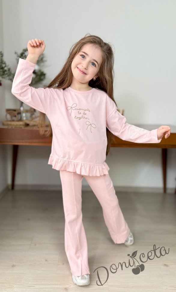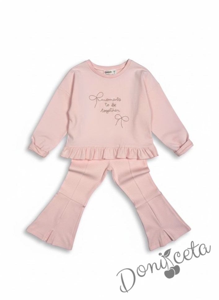 Начало МОМИЧЕТА Комплект за момиче от 2 части в розово с къдрички
