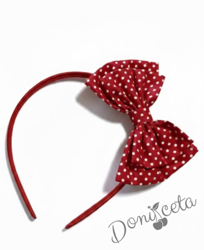 - Нежна ръчно изработена диадема в червено на бели точки.