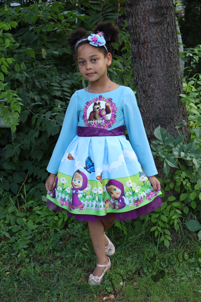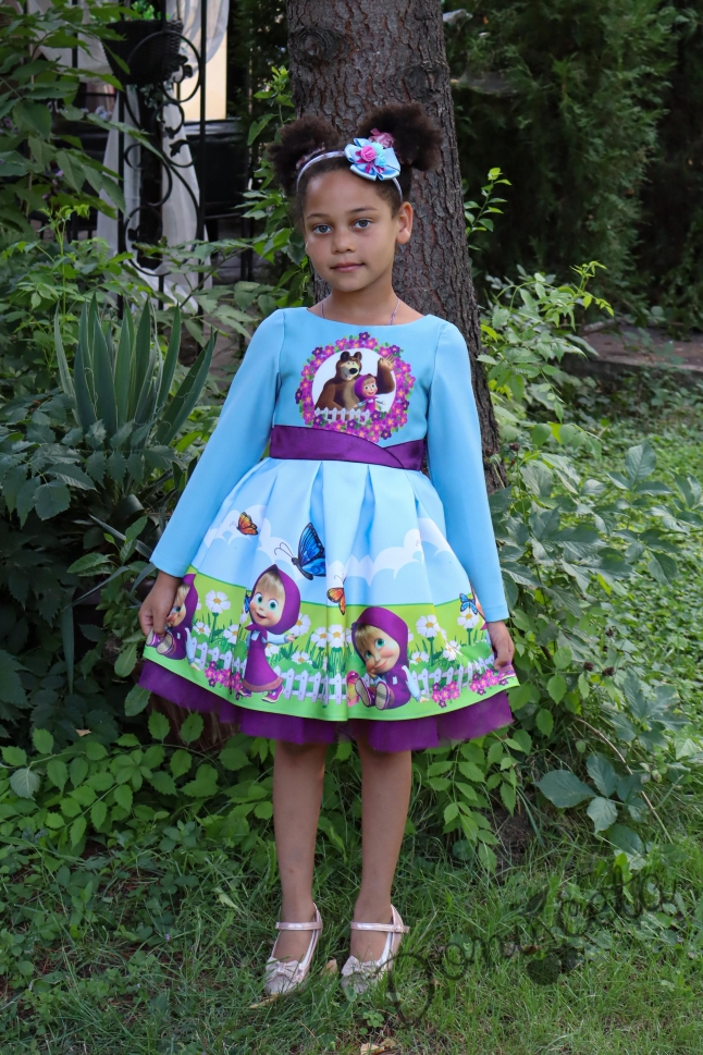 • Официална детска рокля в светлосиньо с Маша.