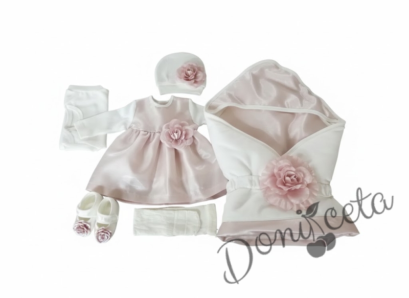 Комплект за изписване от 6 части за момиче в пепел от рози и екрю