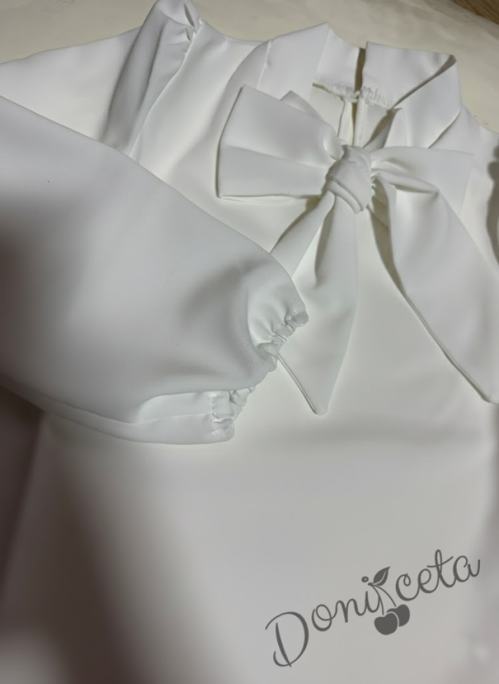 Официална детска риза в бяло с дълъг ръкав и панделка