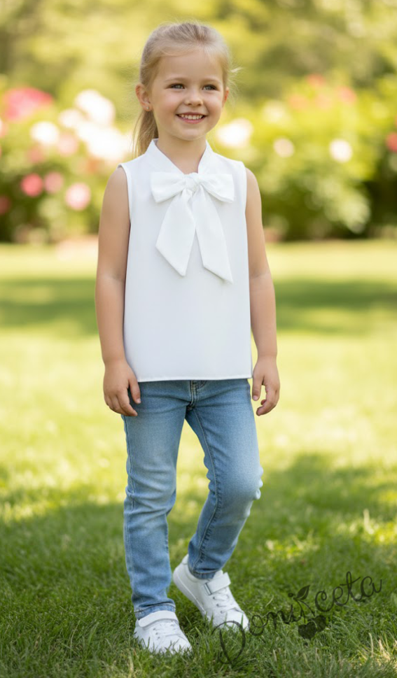 Официална детска риза в бяло с къс ръкав и панделка