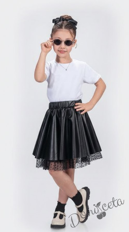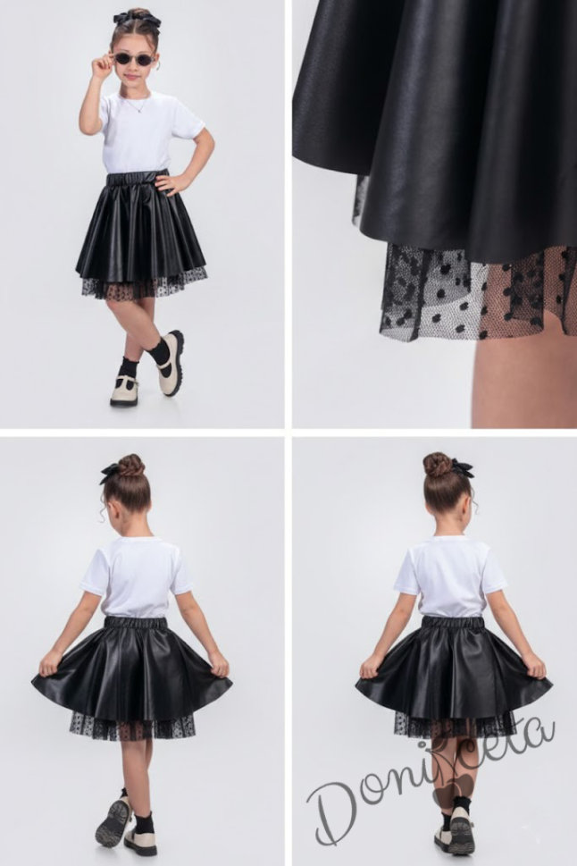 Детска кожена пола в тъмносиньо с тюл