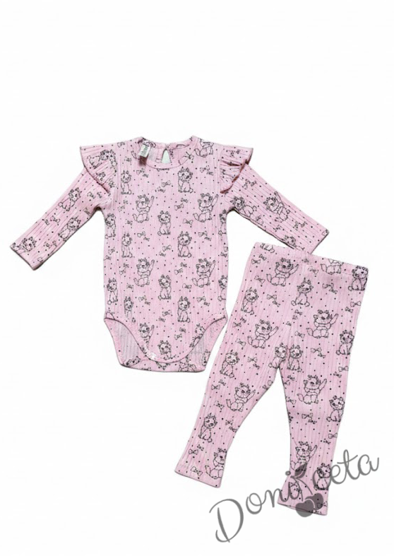 Бебешки комплект рипс за момиче от две части боди с дълъг ръкав и къдрички с панталон в розово