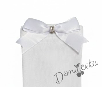 - Детски дълги чорапи в бяло с панделка и камъни.