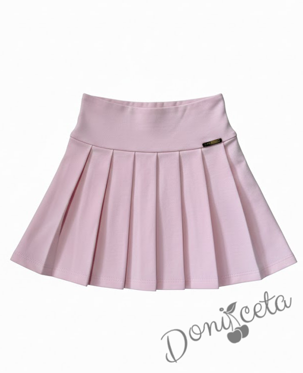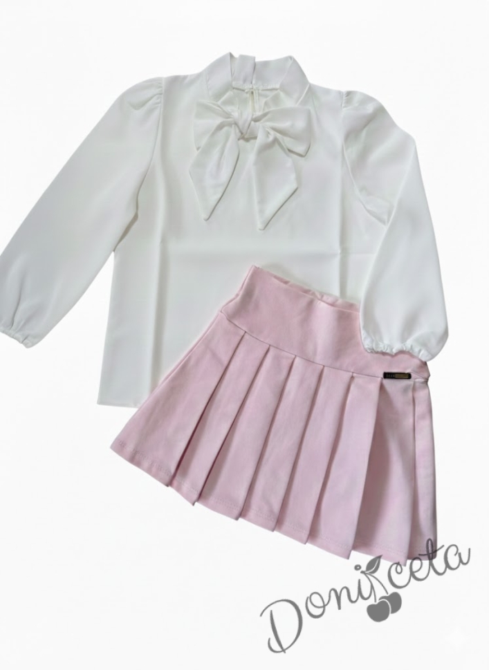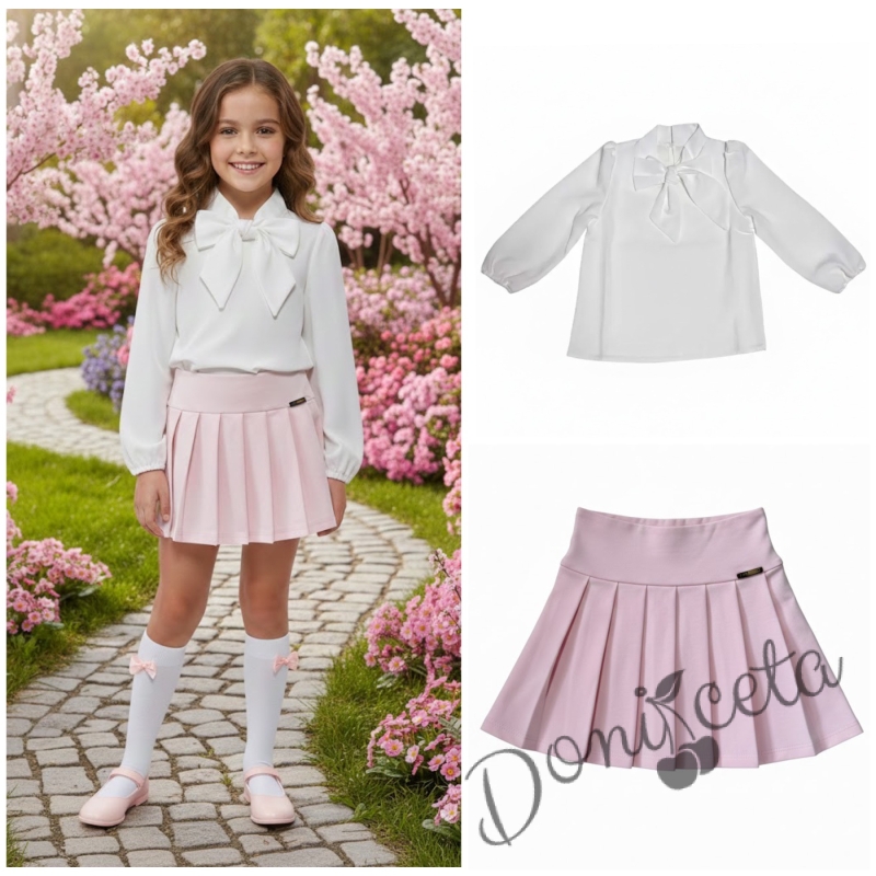 Комплект за момиче от 2 части - розова пола от трико Тамара и риза с дълъг ръкав и панделка