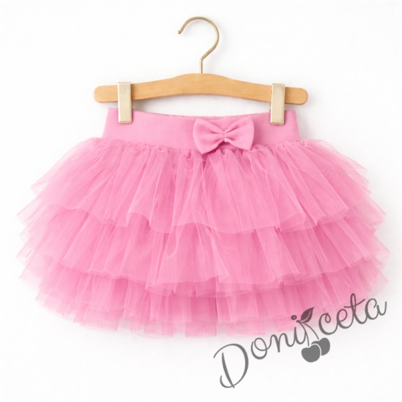 Комплект от тениска в розово с балеринка и туту пола пачка в розово