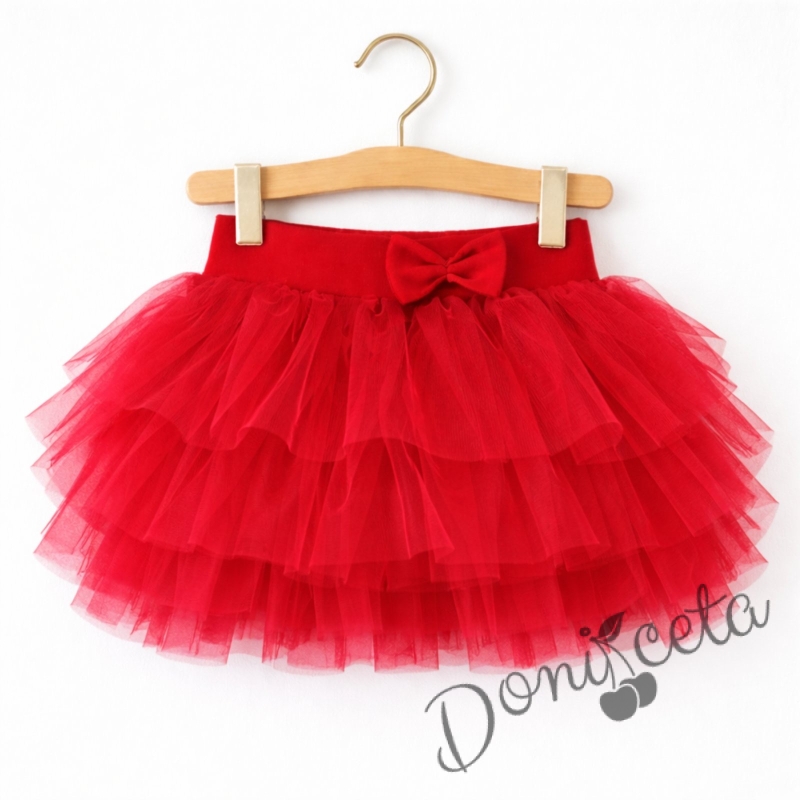 Детска туту пола тип пачка в червено с богат тюл на пластове