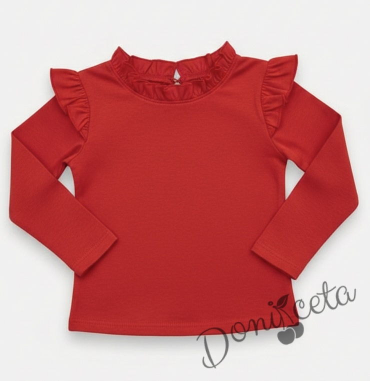 Комплект от 2 части-детска туту пола пачка в червено и блузка с дълъг ръкав в червено с къдрички на рамената и бието