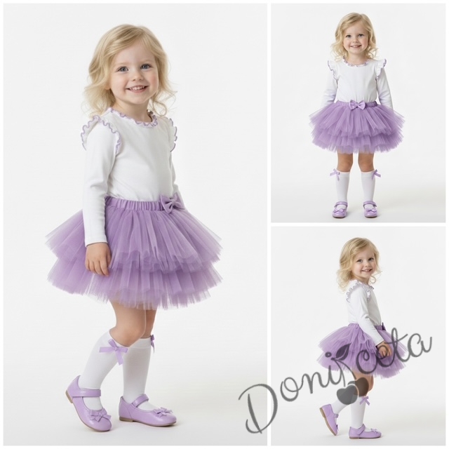 Много весела детска пола пачка в лилаво. Поличката е с памучна подплата и много добре се съчетава с потник, тениска или друга блузка или боди. Виж свързани продукти по-долу!