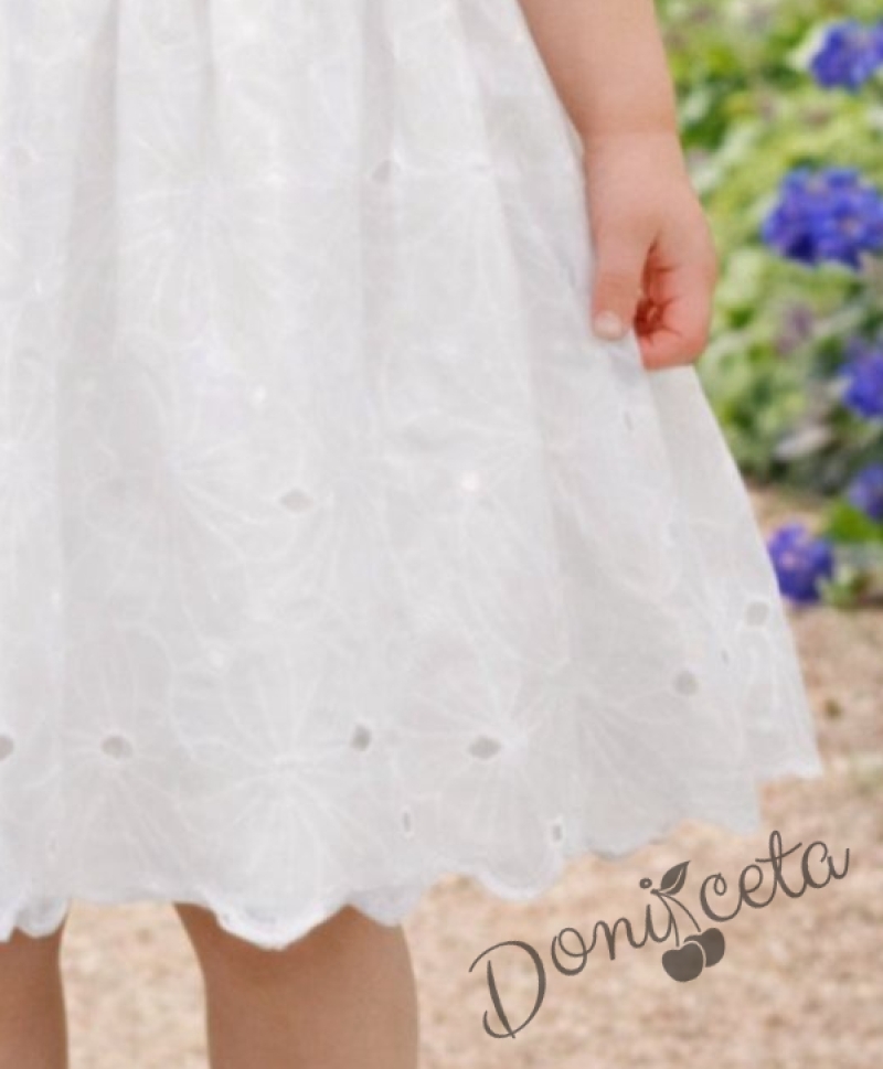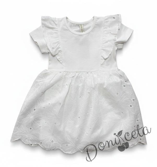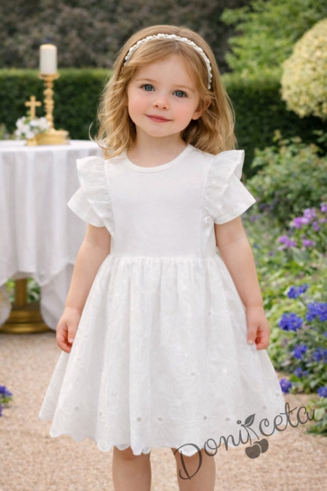Детска официална или ежедневна рокля с къс ръкав в екрю с къдрички на рамената