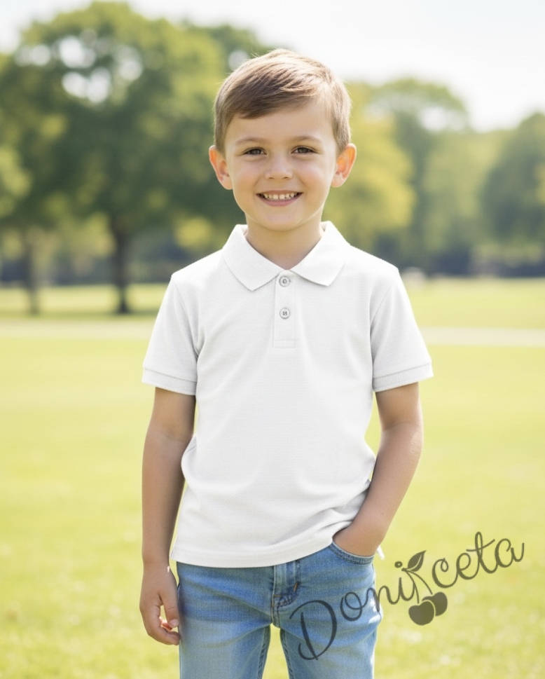 Представяме Ви нашата тениска с якичка за момчета и момичета в бяло.