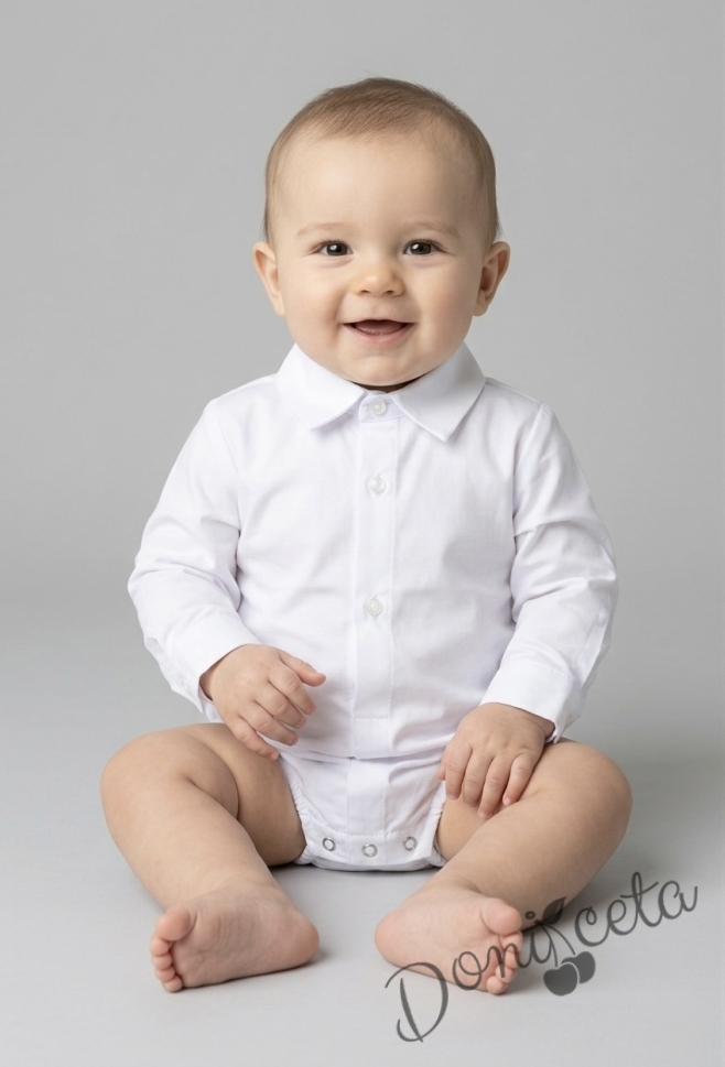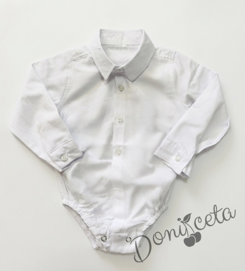 Детска боди-риза за момче в бяло с дълъг ръкав