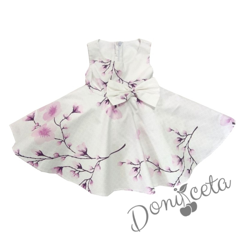 Детска или бебешка рокля клош в бяло на нежни лилави орхидеи тип клош Рали