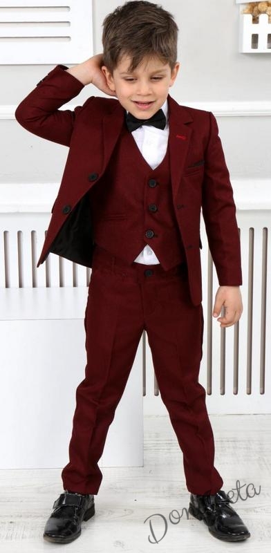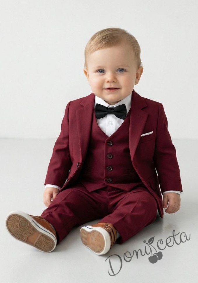 Официален бебешки или детски костюм за момче в бордо от 5 части със сако