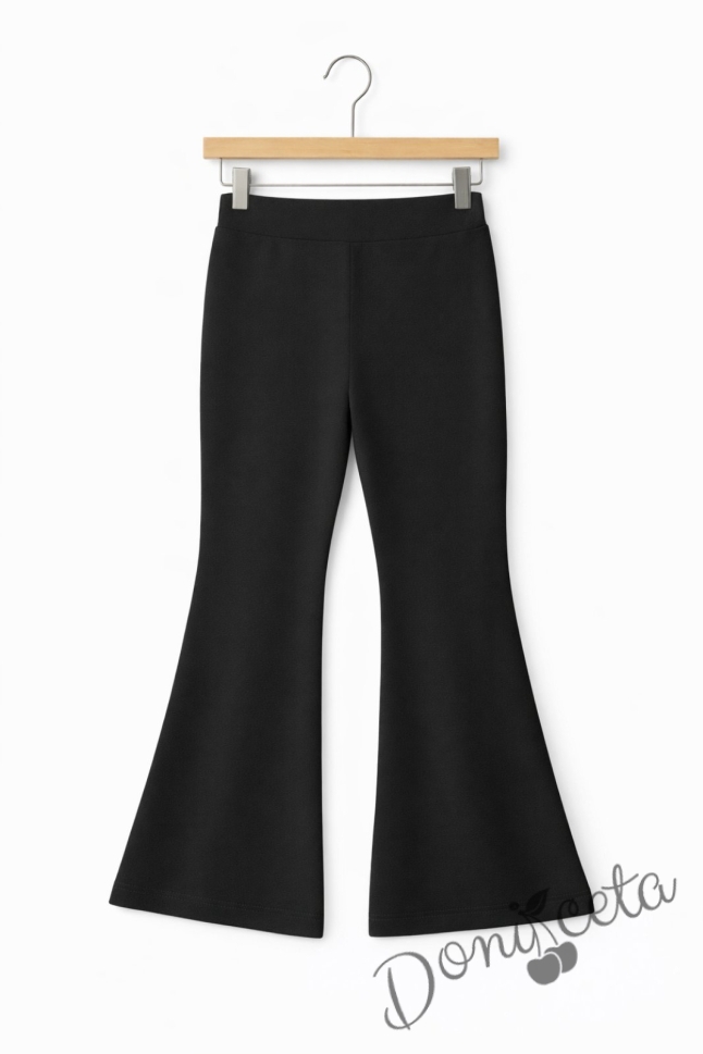 • Детски стилен панталон от трико за момиче в черен цвят тип Чарлстон.