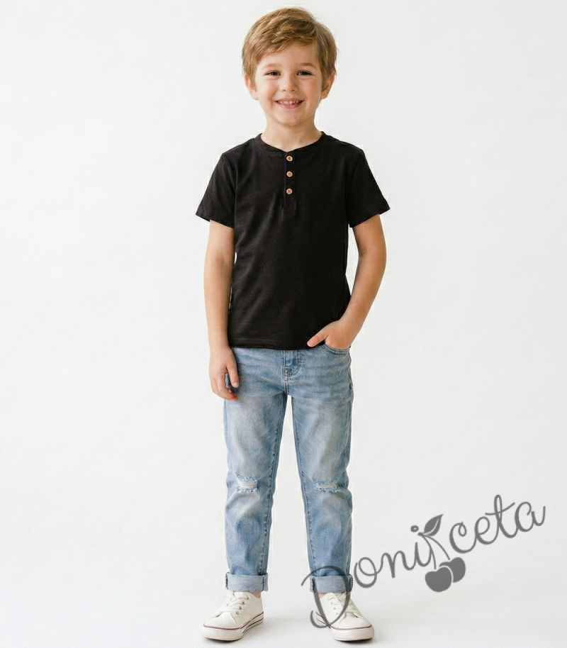 Детски комплект за момче от блуза в черно и дълги дънки в светлосиньо