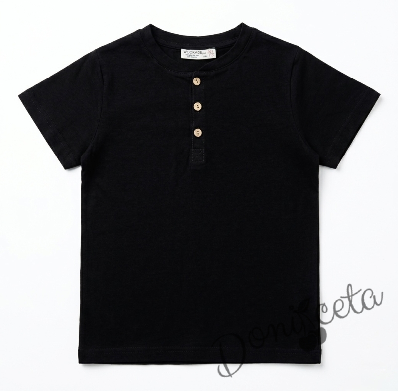 Детска блуза за момче в черно с къс ръкав и бежови копчета