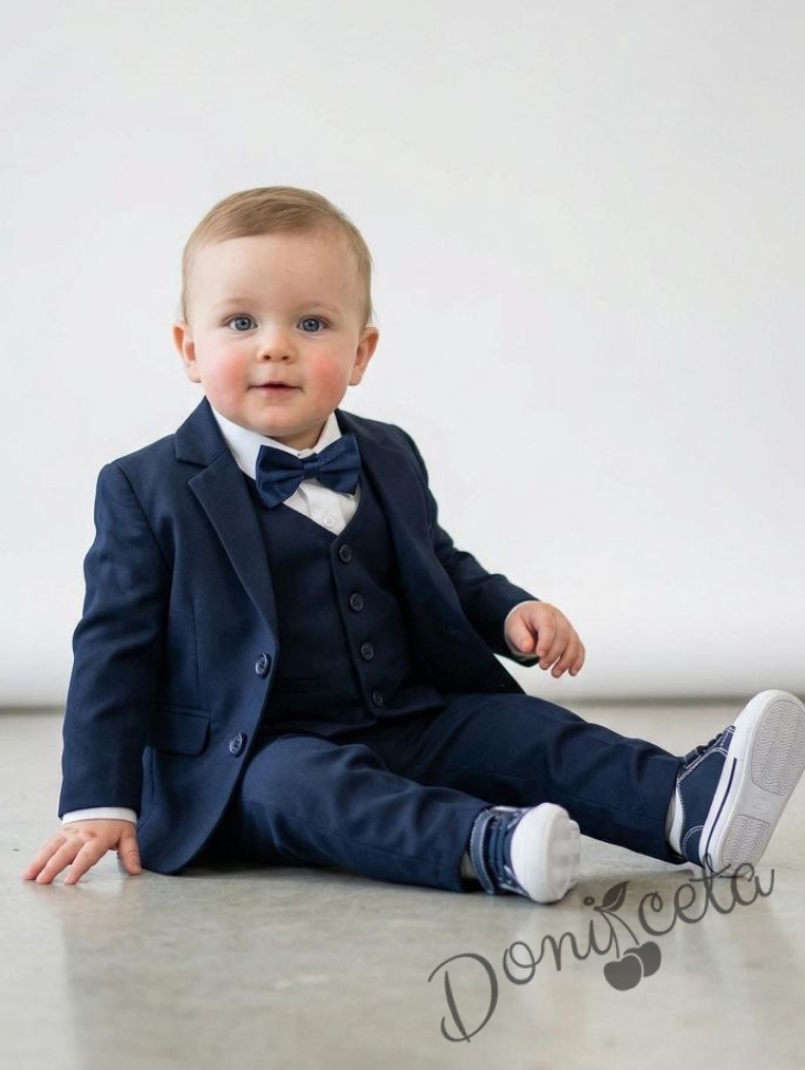 Официален детски костюм за момче и бебе от 5 части в тъмносиньо от колекция Тъмносиняда