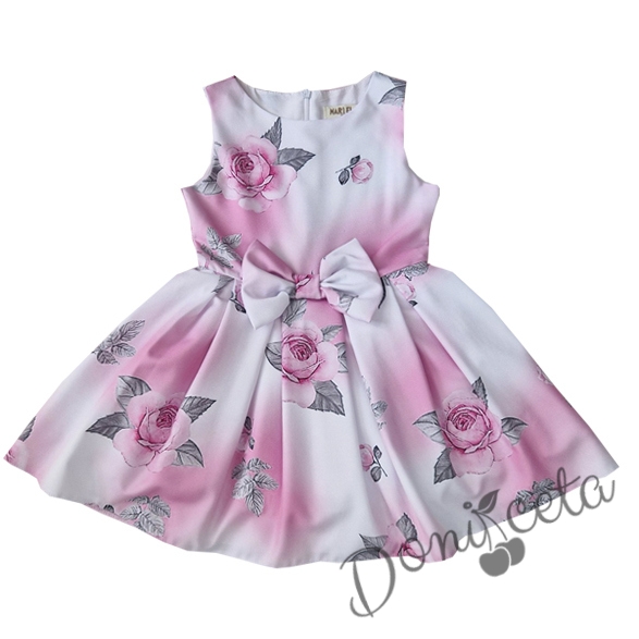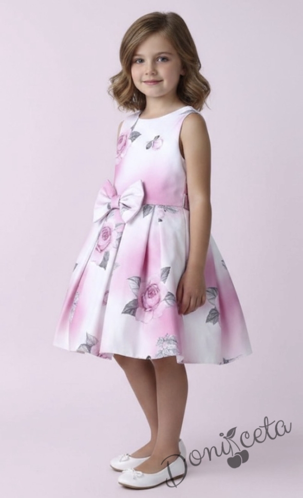 Официална или ежедневна детска рокля в бяло без ръкав с рози Маги