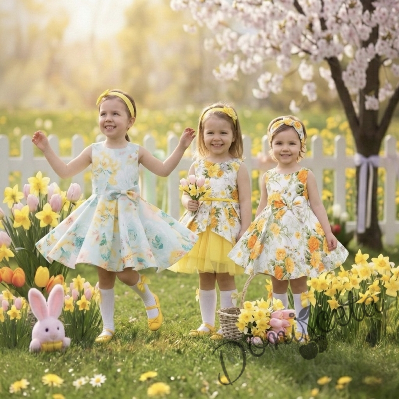 Детска рокля клош Вилина на нежни цветя в жълто
