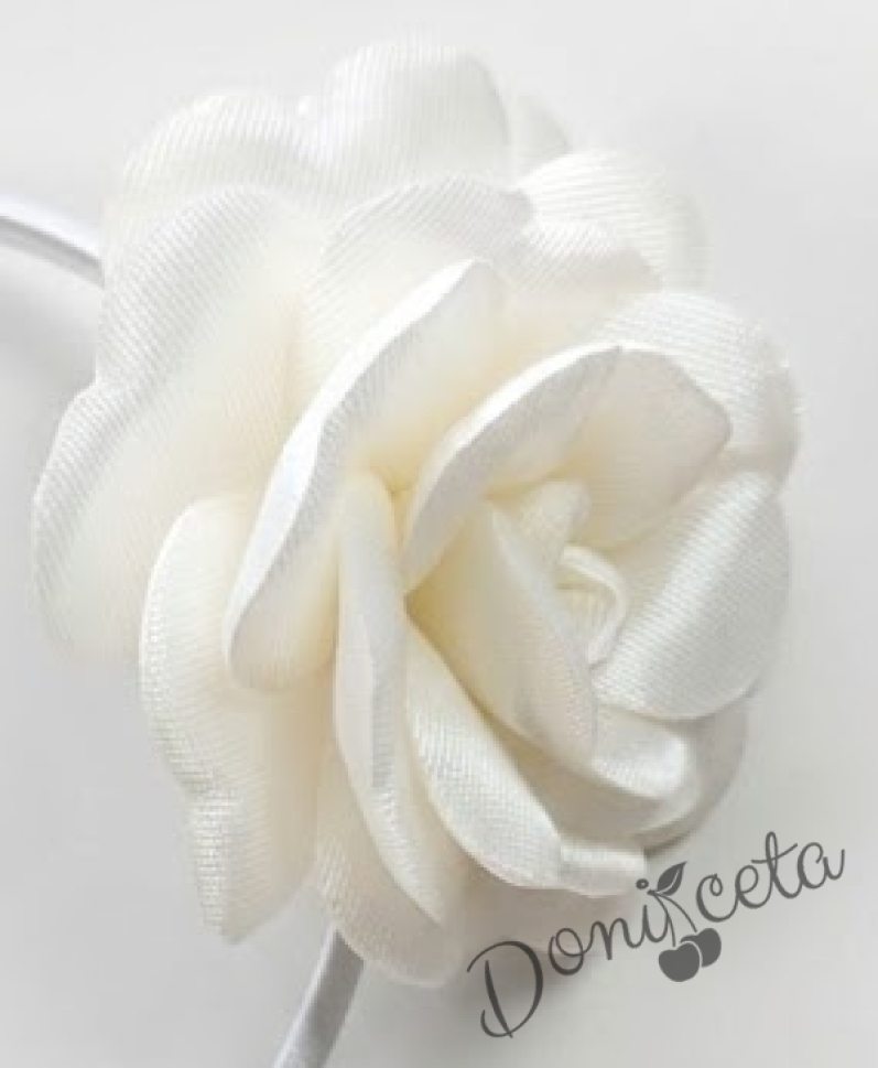 Официална детска рокля без ръкав с рози Маги и болеро в бяло