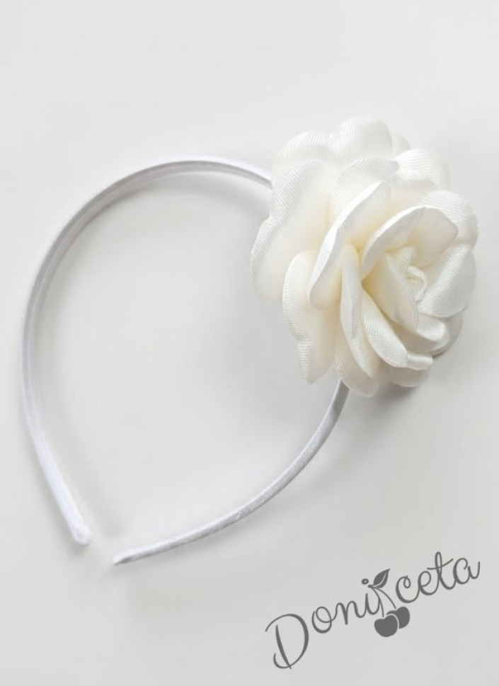 Ръчно изработена диадема с тюл в екрю с цвете